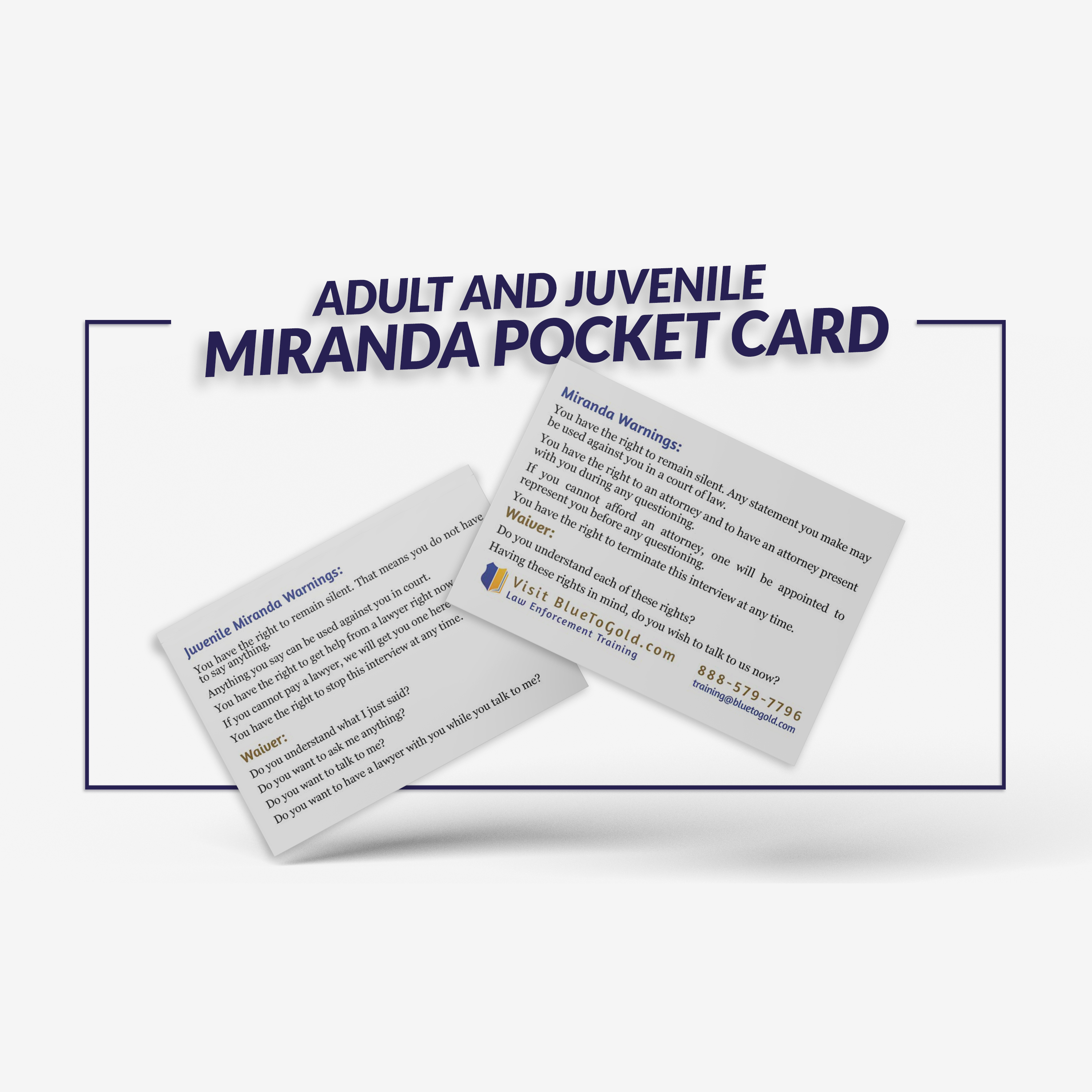 These are invaluable pocket-sized cards to help get a knowing and voluntary waiver from adults and juveniles.