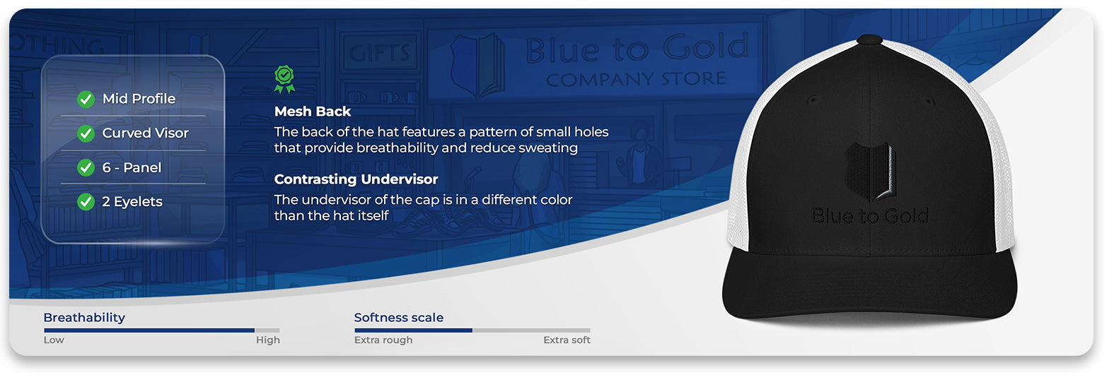 Blue to Gold Cap (Black & White)